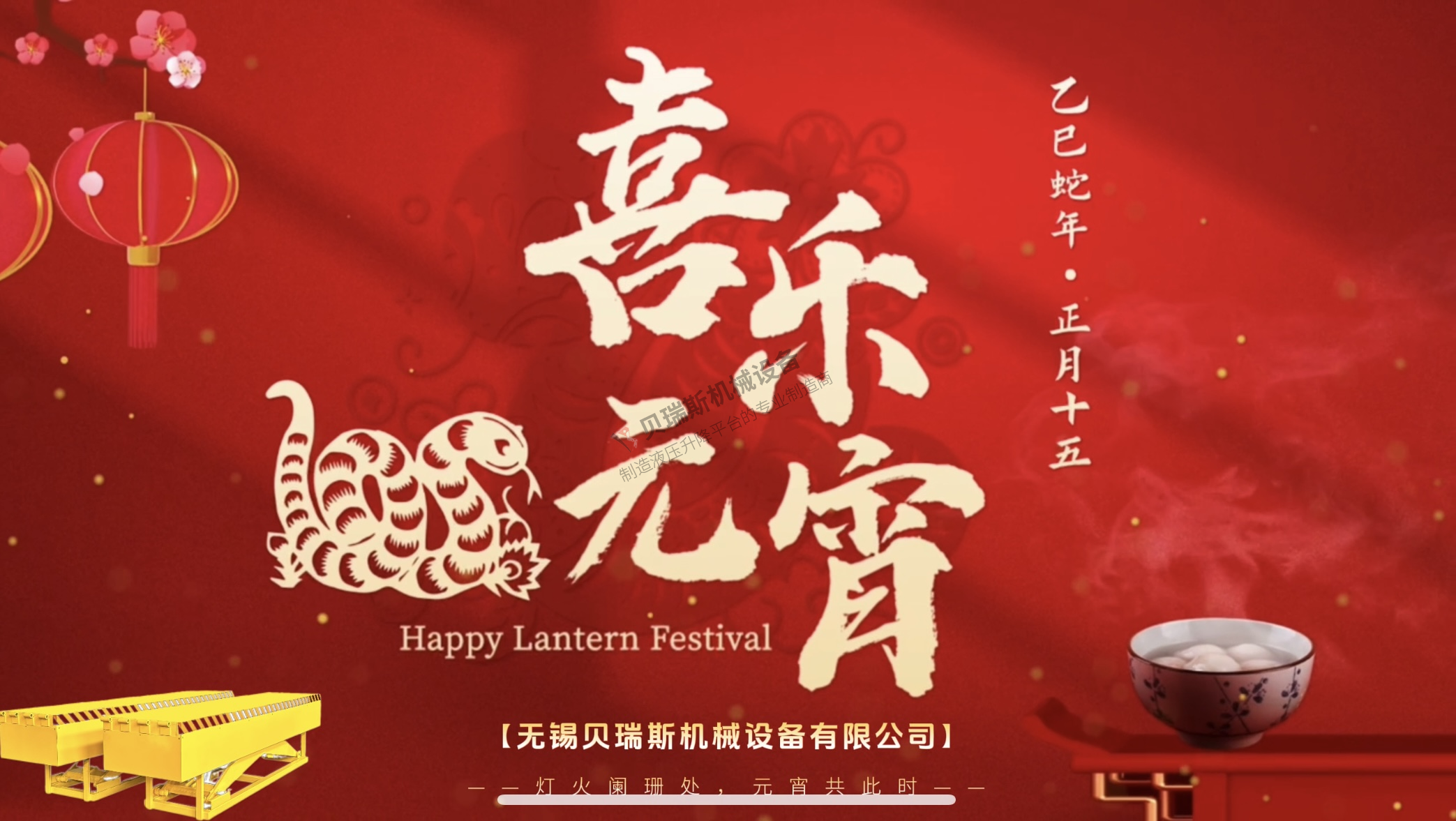 值此元宵佳节,无锡贝瑞斯机械设备制造有限公司向您致以最诚挚的节日问候,恭祝元宵快乐!